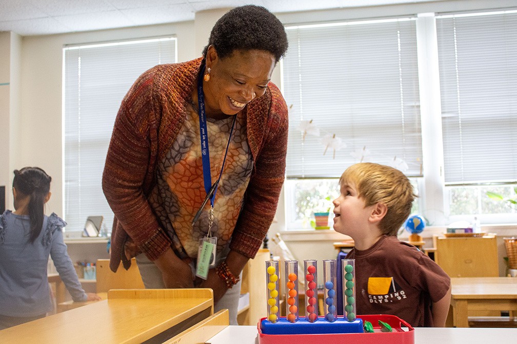 A class of pre-k and kindergartners learn about themselves and their peers through the kind, active, and buoyant atmosphere of Mrs. Zehr's Montessori classroom!